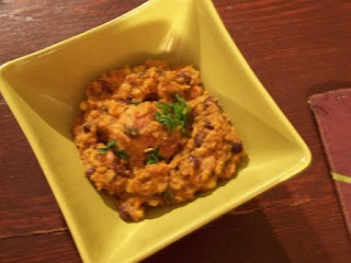 The result? A tasty- yet very filling soup...well more stew-ish really. Thick and hearty this is one that will be perfect on a very cold day in January, and in my very air conditioned office as well. Leaving the spinach, beans and corn whole, meaning un -pureed, creates a really nice texture combination- and those corn kernels are such a nice sweet surprise to a soup that is incredibly earthy, and has a nice bit of kick from the doses of crushed red peppers. The variety of veggies really meld together so you cant necessarily pick out one in particular, though you can see the nice bright spots of orange from the carrots throughout. The flavor really highlighted is that lovely roasted idea...a little charred, but really just deep flavors. The meatballs add a whole other flavor dimension bringing in that brighter parsley taste, and a bit of the sage from the poultry seasoning. Pretty tasty-though when I make it again, Id prefer a creamier texture- so perhaps a bit longer in the Cuisinart, maybe a bit more fat to it- as it is there is very little fat to it aside from any olive oil that the veggies retained from the roasting, and maybe a longer blend with more of the beans?