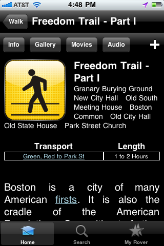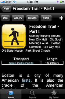 Though I am, of course, concentrating more on the "food" minded side of CityRover, the developers didn't. My favorite non food feature? Say you want to take a walk to burn off some of those calories-no problem! CityRover can show you some of the best walking tours in the city- and even include and audio tour for them! You can turn the city of Boston into your own museum. Good stuff!