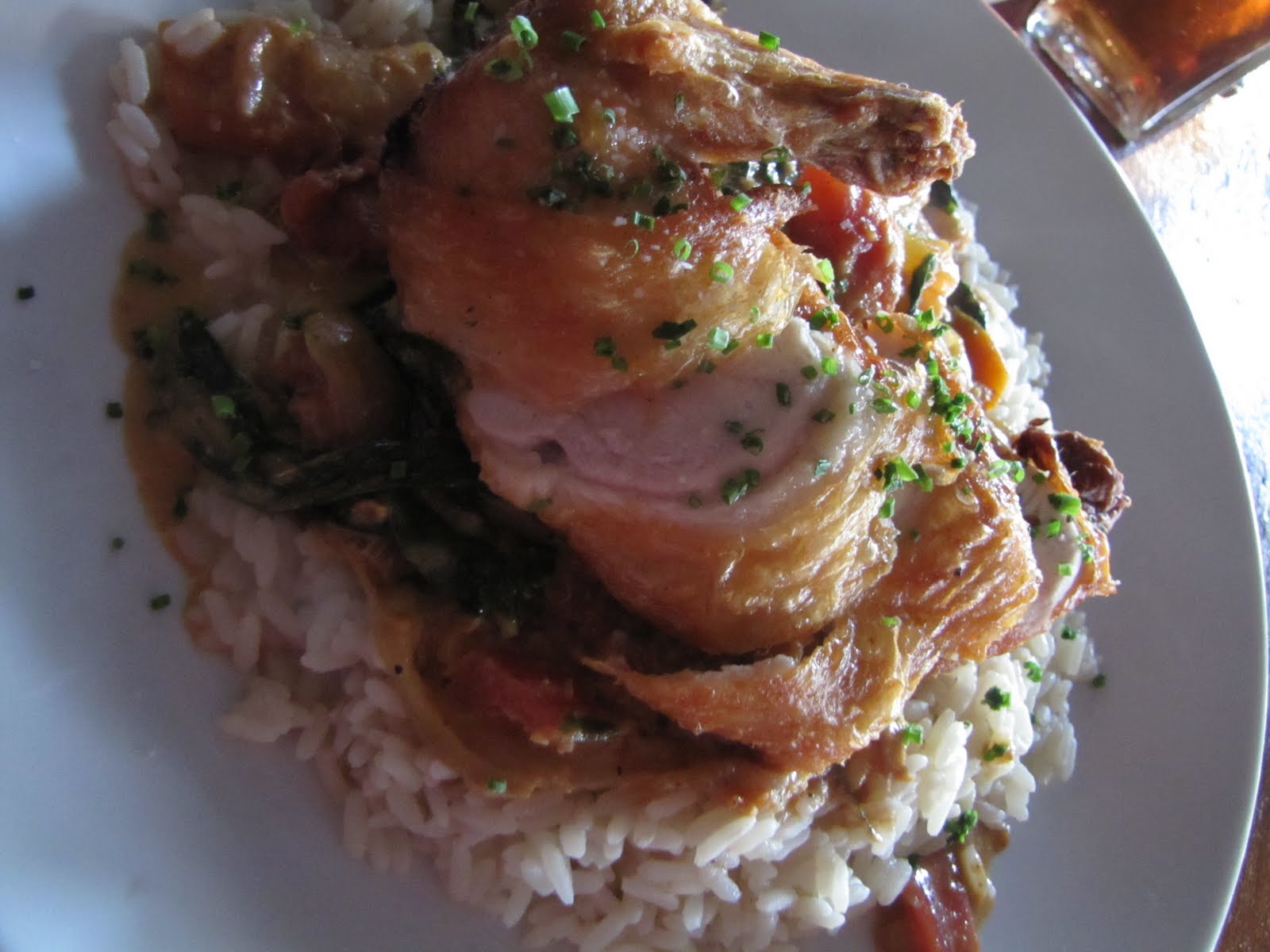 My Tikka Masala was outrageously delicious- the skin of the chicken was perfectly crisped and the tender meat was flavorful and incredibly juicy. The accompanying bed of white rice with assorted root and leaf vegetables dressed in a tomato curry sauce were all fantastic. The rice had a rich buttery flavor to it, and the curry was light, yet flavorful and all together the dish was harmonious.