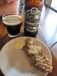 Last night was the elected night, so John and I headed over to The Haven, located on Perkins Street. As soon as we entered I loved the vibe- very laid back, incredibly friendly, pub-like without being that dank, dark vibe that be sometimes be a little off putting. We were seated by the incredibly friendly waitress who's name I cannot at all recall (I'll blame that on the delicious Scottish beer I enjoyed) and we began to look over the menu. The first thing that I noticed about the menu was how entirely UK it was, and this was definitely seconded by Jason who also greeted us. Of course there are dishes that are typically Scottish, like their Haggis and Neeps, but also great dishes like Tikka Masala and Fish and Chips. As we perused the menu we were given pistachio crisps or cakes-small and almost cookie like, these nutty clusters were delicious, especially when dipped into just a little of the salted butter they were served with.