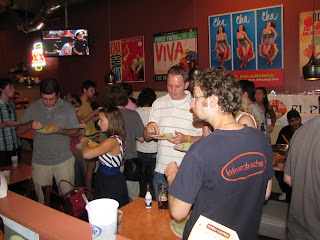 Wow...I have never seen so much Guacamole! Guacaholics Anonymous was this evening and man...it was a sight to be seen! Hundreds of people filed in to the Fenway Cantina to try the guacamole of local chefs as well as a few of us amateurs around town. I'll give the complete play by play tomorrow, but I am definitely still buzzing over the excitement!