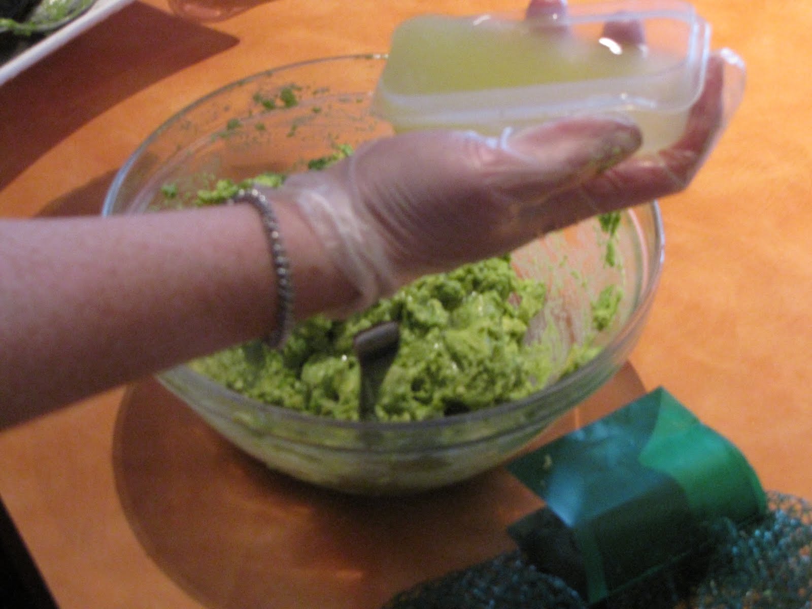 | Fresh squeezed lime juice to help keep the green color fresh, and add some lovely flavor |
