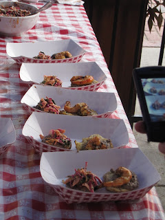 I haven't actually been to either Tremont 647, or to Sister Sorrel before, and was interested to note that they are actually located next door to each other, and connect inside. Very convenient. So the event took place at both of them in actuality, with the different chefs setting up shop outside the restaurants. My first bite of the evening was a slider from the inside grill. This was a lovely little burger, topped with cheese, pickles and "special sauce". Now, I am a girl who loves her pickles on hamburgers so that won big points with me. However the rest of the burger was just OK-not bad by any means, but certainly didn't blow me away either.