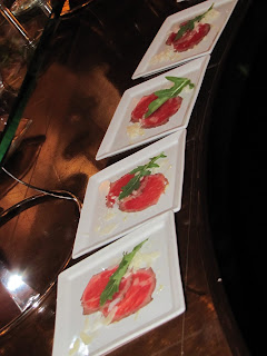 Dinner was beyond amazing. Tender beef cheeks with stuffed squash blossoms, Marscapone polenta with a tomato corn salad, grits with collard greens and tomato jus, beef carpaccio with watercress and cauliflower, and pureed chick peas from East Washington. Amazing, amazing, amazing food, wonderful chefs, gorgeous presentations...the photos will need to complete the journey of food from last night.