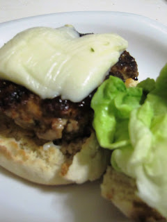 I'm always a little nervous when it comes to poultry so I cooked this one about 10 minutes a side, until I was absolutely positive that it was absolutely cooked through. During the last few minutes I added a nice slice of Mozzarella cheese on top. I served this baby on a dry, toasted English Muffin with just a leaf of local Boston Lettuce from Stillman's, as I wanted to taste as much of the "burger" without accompaniments as possible.