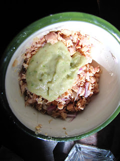 The tuna recipe I chose to use was a take on my own Healthy Tuna Salad recipe from last summer. This year though I used a can of Cannelloni beans (with the packing liquid) combined with half of a jalapeno, scallions, salt and pepper. I didn't add any oils or fats at all to this mix, and, after blending in my food processor, found it to be rich and creamy just as well. I then combined a can of chunk tuna, and a tablespoon and a half or so of diced red onions, and blended this with the bean mix. I love using bean purees in place of mayo-they add so much flavor, along with all of their great nutrients, and honestly, I can't tell the difference!