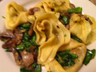I had an incredibly difficult time deciding what to have for my meal, finally settling on their Beef and Veal Tortelloni, served with a veal stock reduction, wilted spinach and exotic mushrooms. The tortelloni were soft pillows folded over and filled with a