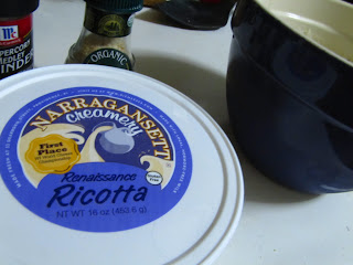 Last night I talked to you about how my dinner for the evening included me playing mini- Iron Chef in my kitchen. Curious about what I was making?? Over the weekend, while at the Boston Local Food Festival, I came across a wonderful stand full of delicious cheeses- the Narragansett Creamery. They had a delightful stand set up and were giving tastes of their products, and, to be honest, I fell in love. I have a real "thing" for Ricotta Cheese, and after just a little taste of theirs, well, I HAD to purchase it-I'm impressed I kept it to just one container to be honest. The Ricotta was rich and smooth, so creamy that it reminded me of a mousse. I tightly clutched my purchase all the way home, as if it was gold and everyone around me knew what I was in possession of.