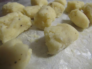 Oh the humble potato...It is such an unassuming vegetable. Not particularly attractive, it is often overlooked and take for granted. The potato though has so much to offer, it's external image-brown and dirty, oddly shaped and full of bulbous oddities, it is a perfect example of the cover not revealing the inner depths of the book. See, I think that the real beauty of a potato is its extreme versatility- you can mash them, fry them, shred them, roast them, and, of course, make them into that lovely pasta- Gnocchi.