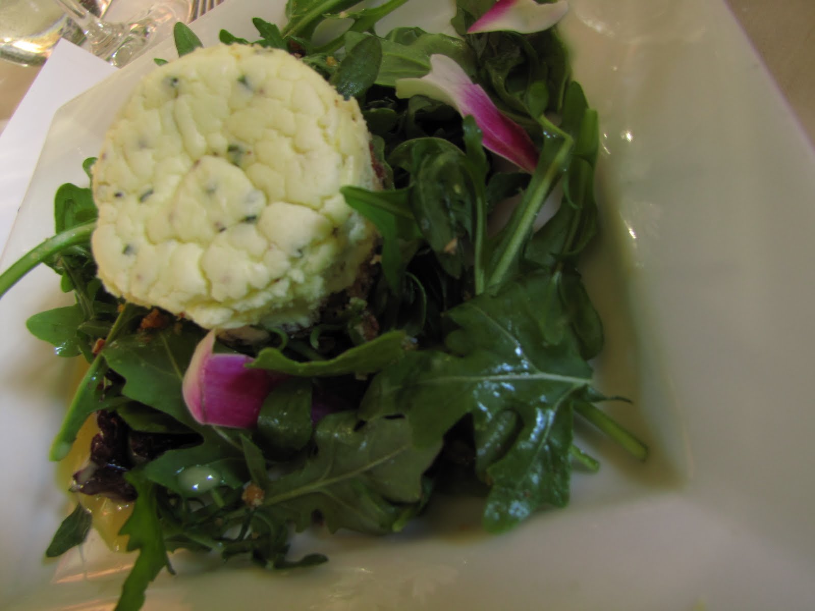 As we nibbled on the tart, we found that we were drink less-both water and our bar drinks had gone un delivered. We finally flagged down another waiter and inquired about our drinks, which were then brought immediately (I assume they were just sitting on the bar waiting for us), but water was still missing. I requested the water a few more times, from several of the waitstaff, it was finally delivered after our appetizer had been cleared.