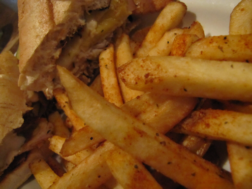 My dining companion had chosen the Grilled Shrimp entree, served with quinoa salad, including arugula, tomato, naval oranges and a citrus vinaigrette. I stole a quick bite of the quinoa, excited to try a version not my own, and was sorely disappointed- it tasted bland, under seasoned and not at all interesting. I also received reports that each of the shrimp served were over cooked as well, rubber counterparts to my scallops. Finally, the tomato was served as two large slices placed over the quinoa salad, completely hiding it from the diner. This might have been a beautiful presentation if the tomatoes were good, late summer, local tomatoes, however as it was they were rather pink, mealy, winter tomatoes- and the affect was more annoying than anything.