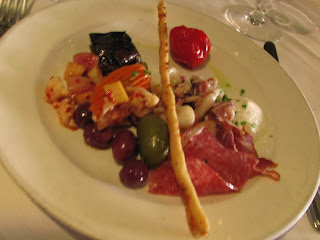 Company of the Cauldron is an intimate restaurant set on the cobblestone street called India, just off of the main downtown area. A cauldron hanging from the door jam is it's main indicator, though menus outside the door confirm it's presence. Unassuming in decor, the Cauldron has a unique offering to it's guests- a prix fixe meal, with a set menu each evening. There are no options to the menu, what is listed is what is served. Of course, if you have allergies or preferences a simple call to the restaurant a few days prior to your reservation will guarantee that tweaks to the nightly menu will be taken. The restaurant has two nightly seating's, once at 6:45 and one at 8:45. We arrived at 8:35 pm for our 8:45 seating and found a crowd waiting outside the door, apparently when they say 8:45- they mean it. The doors to the restaurant were not opened until the minute hand struck the 45 mark, and we were seated as we walked into the space.
