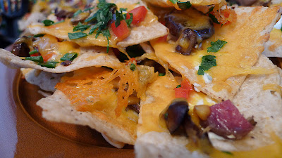 While this mix of ingredients may seem odd, the result was addictive.  The lemon zest added a wonderful burst of brightness to both the rich Boar meat as well as the tangy goat cheese.  The sharp cheddar cheese lent striking contrast to the goat cheese, and surrounded the mushrooms.  I loved the different textures all throughout these nachos. The crispy chips paired well with the saucy cheese and the soft mushrooms.  These were definitely not a typical nacho preparation, but one that truly worked.