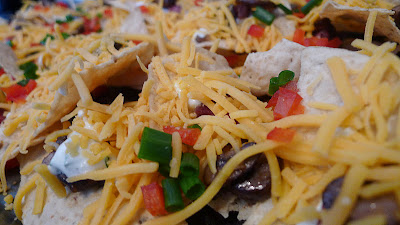 We're all pretty well aware of Nachos right?  Chips, cheese, some beans, salsa, sour cream...the ingredients are pretty standard, and, I won't lie- pretty awesome.  I mean honestly- you melt some cheese and combine it with salty crisp chips and then top it all with spicy salsa- well you've got a hit.  Nachos were first created in 1943 in Piedras Negras, Coahuila, Mexico as a quick snack using what was readily accessible in the kitchen of a closed restaurant for some hungry shoppers.  Since then Nachos have been made time and time again and are now the snack food of choice in restaurants, bars, ball parks etc for anyone searching for a cheesy treat.  Watching football always seems to instill the craving in me, so when a friend suggested making some Nachos for the Patriots game this weekend- I was all in.