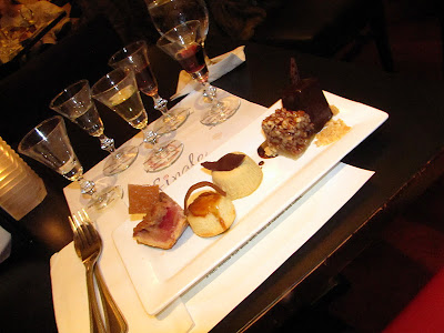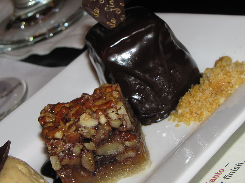 We then tried out the Chocolate Bourbon Pecan Pie.  Pecan Pie is my weakness -I absolutely love the stuff.  Its sweet, decadent, delicious...it's perfection.  Finale's version has a chocolate base layer that is a nice addition, though in my book, not needed.  This was paired with a beautiful Vin Santo, which, when paired with the pie, brought out notes of orange which was lovely and created a bit of diversity in the dish.