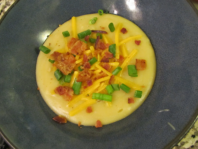 It really shouldn't come as any big surprise that I adore, adore, my friends who are just as obsessed with food as I am.  Trading ideas, listening to their thoughts, and the obscene amount of knowledge that I gain from these conversations constantly amazes me. I am inspired by their ideas, and treasure these discussions.  Last week, in passing, my friend Dan (aka Chef Daniel Silver raved about here) mentioned that he was competing in a soup contest, and he was entering with a mashed potato soup that sounded incredible.  I was in the process of designing some snacks for football viewing, and immediately thought that that sounded like a wonderful accompaniment.  Hearty and comforting, with the approach ability of the heart warming side dish we all love so well, but spun into a perfect soup, perfect for entertaining and keeping guests warm and satisfied as they cheer on their favorite team.