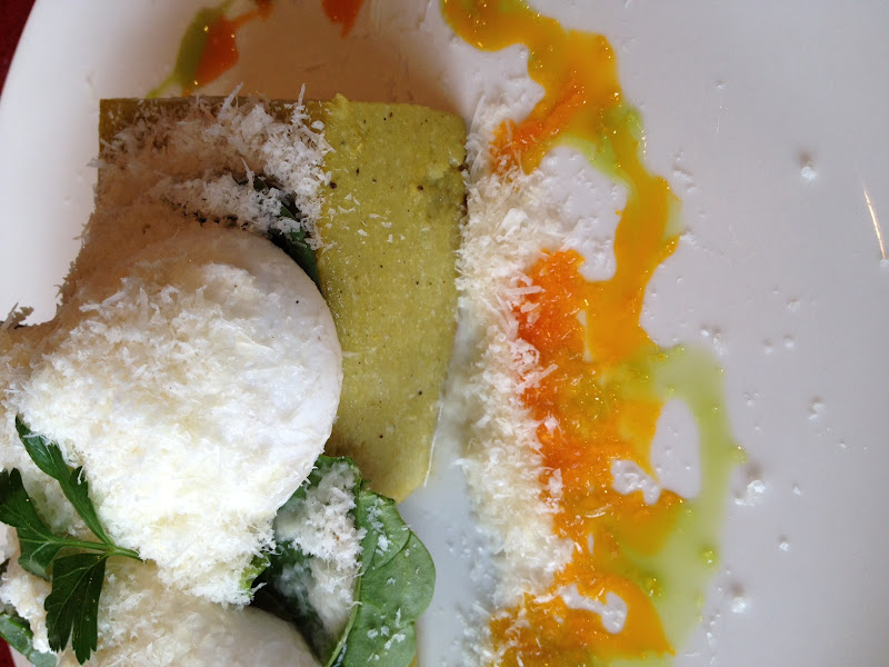 After a long debate, and much back and forth, I settled on Parmesan and herb polenta topped with spinach and two eggs as my breakfast. I was served a gorgeous plate of two squares of firm polenta, liberally topped with fresh baby spinach, two poached eggs and then topped with a healthy dose of grated Parmesan cheese and enhanced with herb and chili oils. The polenta was well flavored, every bite containing a burst of a variety of herbs. The spinach added a nice fresh component, and when my poached eggs were burst the runny yolk made everything just a bit more luxurious.