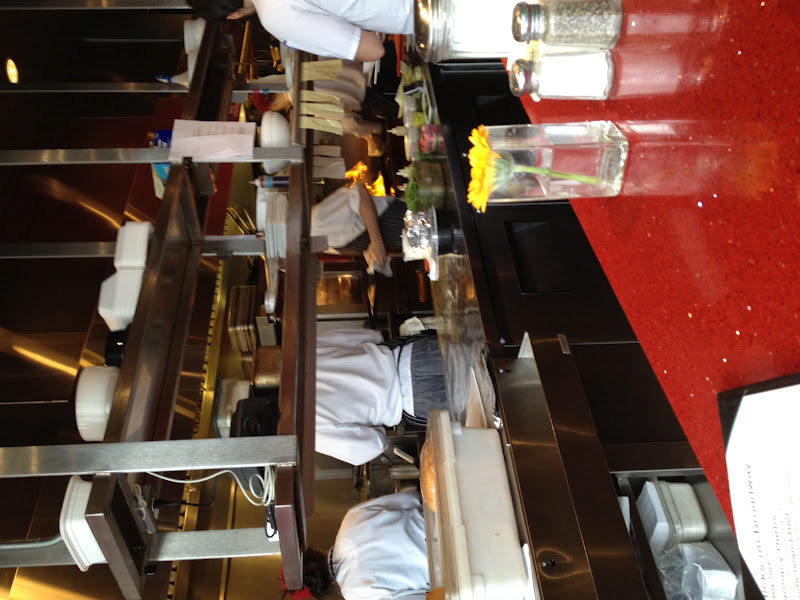 We pulled up our seats, ordered coffee and juice, and though we tried to concentrate on the menus, the show happening in front of us was tough to pull ourselves away from. Every dish was finely crafted, eggs cooked with finesse, perfect circular pancakes flipped and plated with just the slightest of hand. To every plate, chef owner Derek Wagner added the finishing touches- a leaf of parsley here, a sprinkle of mint there, a shower of Parmesan cheese on another plate. The chefs and cooks moved and worked together in harmony- like a finely crafted orchestra each one performing their assigned task, and not missing a beat no matter what was thrown at them. Even better than watching their incredible precision, was watching their camaraderie. Sitting at those seats was a window into a different world, a world I am truly fascinated by.