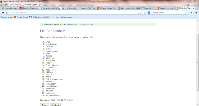 Random.org has picked a winner for the HoneyBaked Ham gift card- and it is Erica T! Erica- Ill send you a quick email shortly