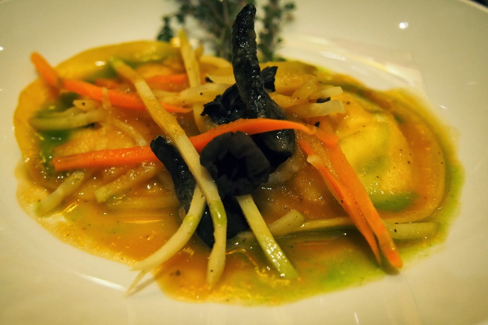 We then turned our attention to our pasta course. Sonoma Goat Cheese Raviolis