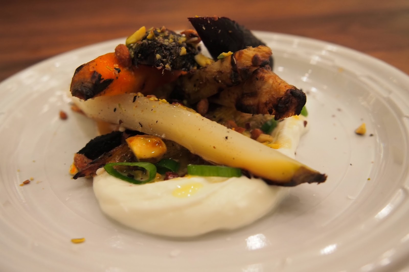 I turned my attention to the Grill Moroccan Spiced Tuna next. This had the Ahi Tuna coated in Moroccan spices and then grilled up. It was gently layered over a fava bean hummus and served with a summer bean salad, and heirloom tomatoes. As I devoured each bite of this dish from the hands of chef Morlino, I kept coming back to one word- clean. The spice surrounding the fish was full of flavor, but not overpowering to the tuna which was allowed to shine on its own. The fava bean hummus had simple natural flavors to it, but also added a bit of decadence to the dish in its creamy quality. I loved every bite of this dish it was rich and filling while being light and incredibly clean.
