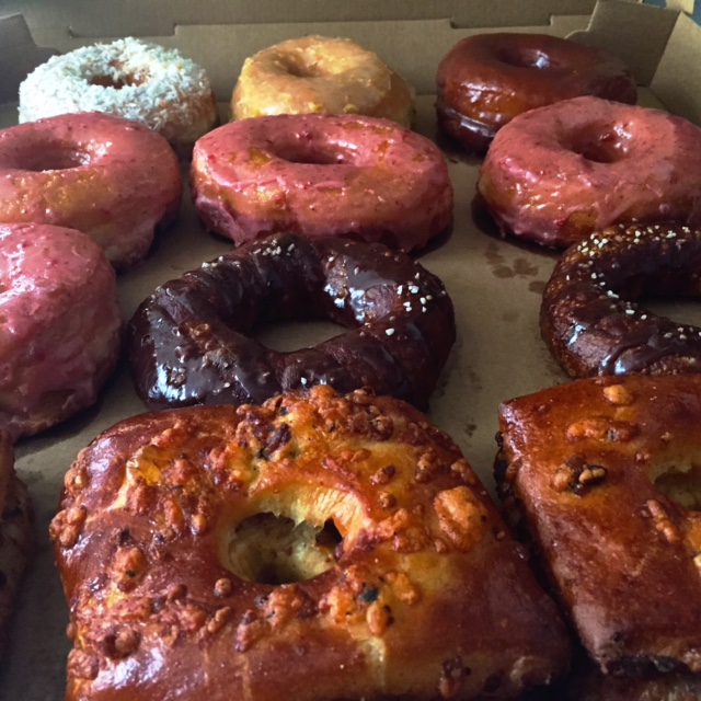 The final, most important, piece of this evening was the donut pairing. Union Square Donuts brought a dozen of their incredible confections to my door step making it basically the best day ever. Included were flavors of Strawberry Glaze, Creamsicle, Malted Milk Chocolate, Chocolate Covered Pretzel and Bacon