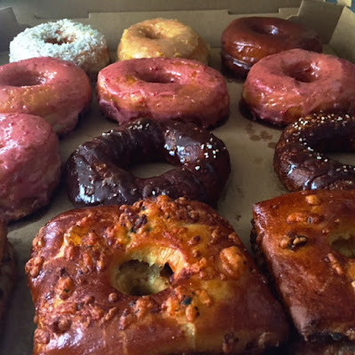 Cheddar Sage- yes you read that right- Bacon. Cheddar. Sage. Now you may not picture wine with donuts- I assume most of us pair coffee with those clouds of heaven, but let me tell you- this is a good pairing. Follow the same rules as you would for any food/wine pairing - and match flavor components. The light fruity flavors of Verdejo pair perfectly with the bright strawberry flavor of that glaze. The deeper flavors of the chocolate or the savory sage, bacon and cheddar worked perfectly with the Tempranillo's even helping to temper the tannins down with the decadence that is a donut.