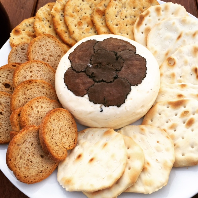 Robiola topped with shaved black truffles, an aged Manchego and a Crayeuse. Robiola is one of my favorite cheeses simply because its fascinating. I insist that if you pick this up - you must get a fresh milk version. Robiola is a soft cheese and its flavors are purely determined by what the animal feasted on prior to milking, hence why the fresh milk portion is necessary. The flavors can change by the season for this reason which makes it a fun cheese to check in on year round. The decadent addition of truffles here brought a touch of mushroom earthiness to the otherwise tangy cheese. Crayeuse is another cows milk cheese but this one is aged in stages- first quickly so the exterior portion is soft almost to runny and then slowly so the interior remains somewhat chalky. The combination keeps the palate entertained. Manchego was the only hard cheese I got to mix things up a bit. Manchego is nutty and sometimes a bit gamey, a great stray from the citrus notes of the previous three cheeses. Combining the Manchego with the Heritage was fantastic as it brought out more of the undertones of the wine, cutting past the tart fruit piece.