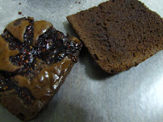 The cake was moist and dense, full of sweet banana flavor, interrupted only by the delight of bitter sweet chocolate. This was a sturdy cake, able to stand up to a good topping, had I dedicated time to make one, or a delightful glaze. I kept envisioning a orange glaze for some reason...perhaps I'll have to make again.