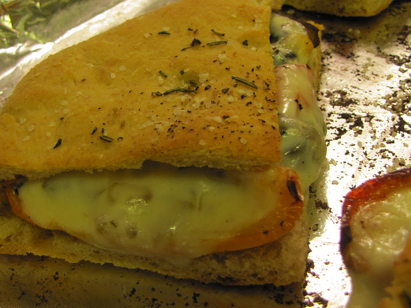 These sandwiches were simple, but truly delicious.  The simplicity of the roasted vegetables paired with the gooey cheese and then stuffed into the flavorful homemade bread was a combination worth its salt.  They were hearty and satisfying, providing all of the toothsome feel you want when savagely ripping into them...or daintily eating them as a lady would.
