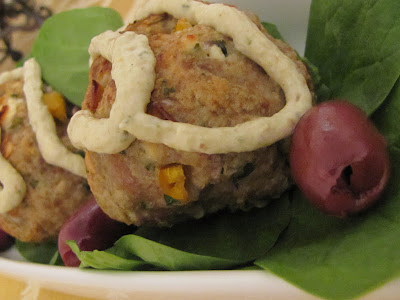 This week I had a craving for olives and Feta cheese.  I don't know where these things start, but I decided to go for it.  The Greek Inspired Turkey Meatball was born.